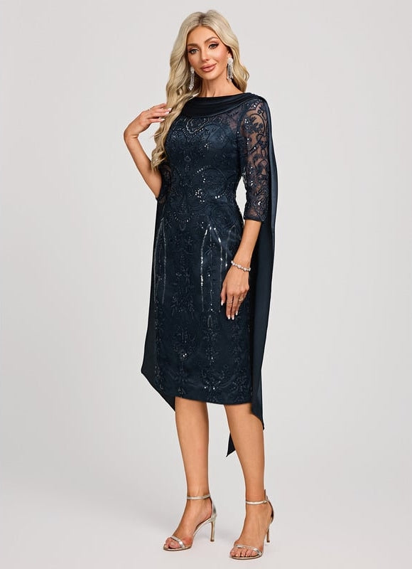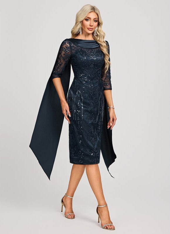 Imaginez-vous captivant tous les regards dans cette somptueuse robe moulante col bateau. Conçue pour sublimer votre silhouette, sa coupe fourreau midi épouse parfaitement vos courbes, vous offrant une allure à la fois chic et sophistiquée. Le tissu en dentelle délicatement orné de paillettes scintillantes ajoute une touche de glamour irrésistible, faisant de chaque mouvement un spectacle. Que ce soit pour un cocktail, un mariage ou une soirée spéciale, cette robe est votre alliée pour briller et vous sentir incroyablement confiante. Son élégant col bateau met en valeur le port de tête, tandis que son dos en V apporte une touche de séduction subtile, complété par des drapés fluides qui ajoutent une touche majestueuse.