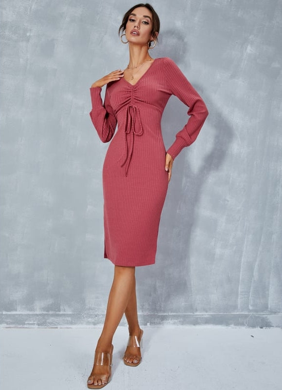 Préparez-vous à faire sensation avec notre magnifique Robe Moulante Côtelée Ajustée, conçue pour celles qui aiment allier confort et élégance. Cette pièce essentielle de votre garde-robe épouse délicatement vos formes, sublimant votre silhouette sans effort. Fabriquée dans un coton doux et extensible, elle vous assure une liberté de mouvement et un bien-être inégalés tout au long de la journée. Son design côtelé ajoute une texture raffinée, tandis que son col V flatteur et ses détails froncés ajustables au niveau de la poitrine créent un look à la fois chic et séduisant. Idéale pour les saisons plus fraîches, cette robe midi est la définition même du style polyvalent, parfaite pour un brunch décontracté ou une soirée élégante.